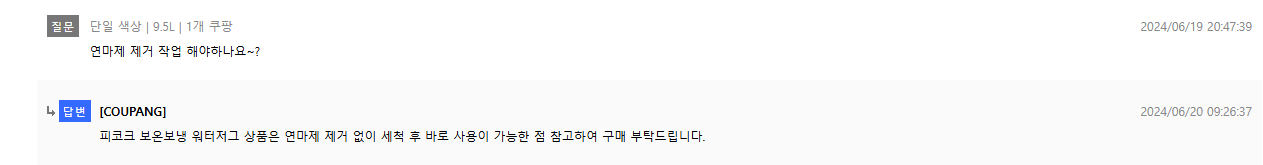 그리고 무엇보다 판매자님께서 연마제거 작업 안하고 사용하셔도 된다고 답변이 있더라구요.